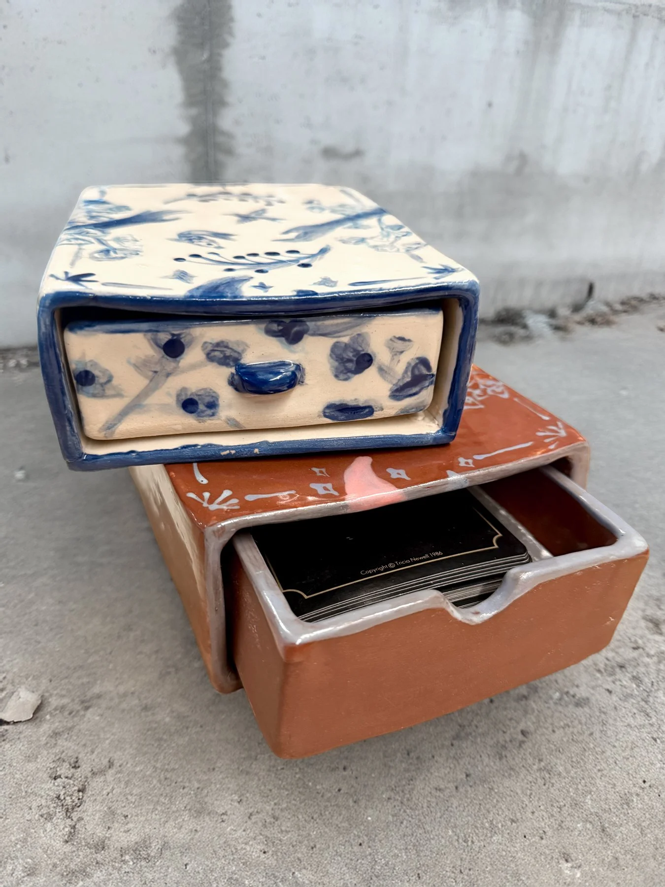 This would be the third firing so the boxes shrank more than original calculation. Now the tarot deck won’t fit. Bummer.